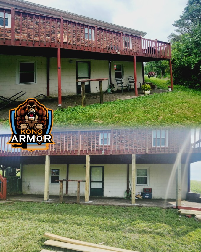 Kong Armor ™ comes with Professional project and application via its local Deck Rescue Painters. On this Georgetown KY Deck the project was a very simple one for us and our world’s toughest deck armor.